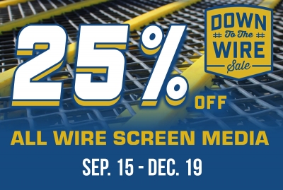 Apply an extra 25% off ALL Wire Screen Media now through the end of the year. All orders will be delivered in February 2026. This includes PolyClean Screens and our Classic RB Scott Wire Screen Cloth. Whether you need to replace worn panels or stock up ahead of the busy season, our high-quality wire cloth delivers reliable performance and consistent sizing for every screening application. Don't miss your chance to save big on the screen media you trust - shop at RB Scott today.Discount Code: WIRESCREEN26