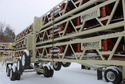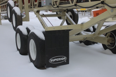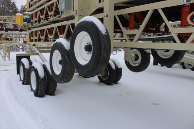 TRL V type axle – 10’ 6" adjustable discharge height, walking beam axle, non-swiveling dual 11R-22.5 wheels and tires